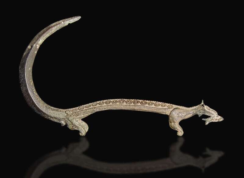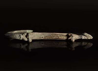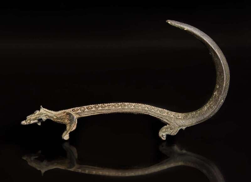 A rare Vietnamese bronze zoomorphic creature, Dong Son Culture, circa 500 BC 越南動物型青銅鉤 東山文化 約公元前500 年