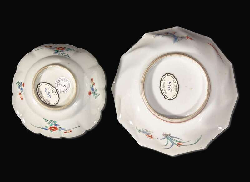 Two Japanese Kakieman palette shaped porcelain bowls, circa 1700-1725 日本柿右衛門式盌兩隻 約1700至1725年