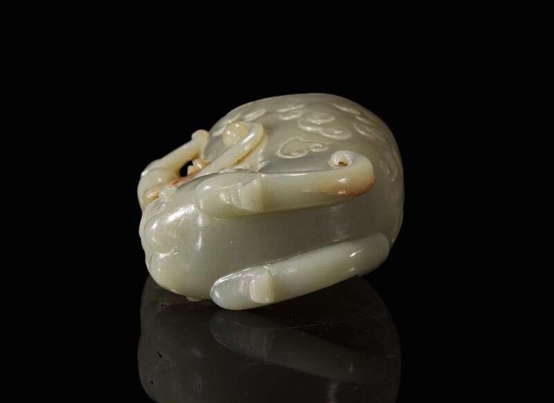 Carved with a dragon head to the base, with a qilong-form handle to side, the body carved with cloud pattern motifs