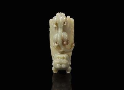 A Chinese carved celadon jade rhyton 玉爵杯