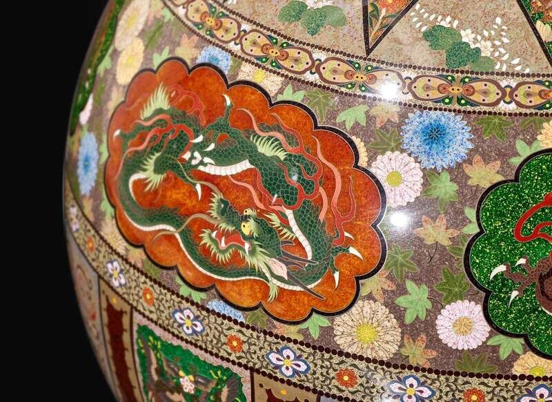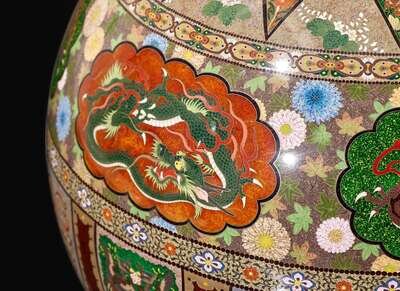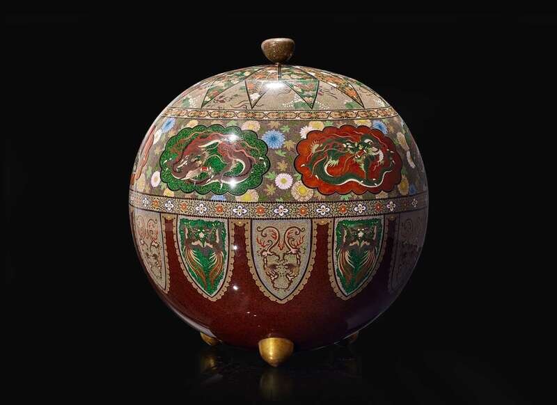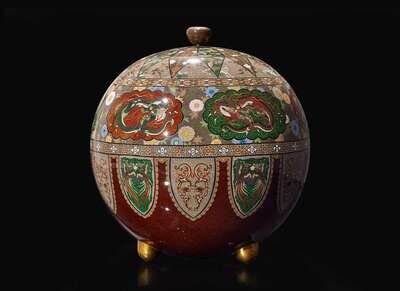 A Japanese cloisonne large spherical vessel and cover, Meiji period 日本琺瑯圓蓋罐 明治