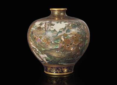 A large Japanese Satsuma-type vase, signed Suizan, Meiji period 日本薩摩燒形製大罐 翠山款 明治