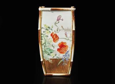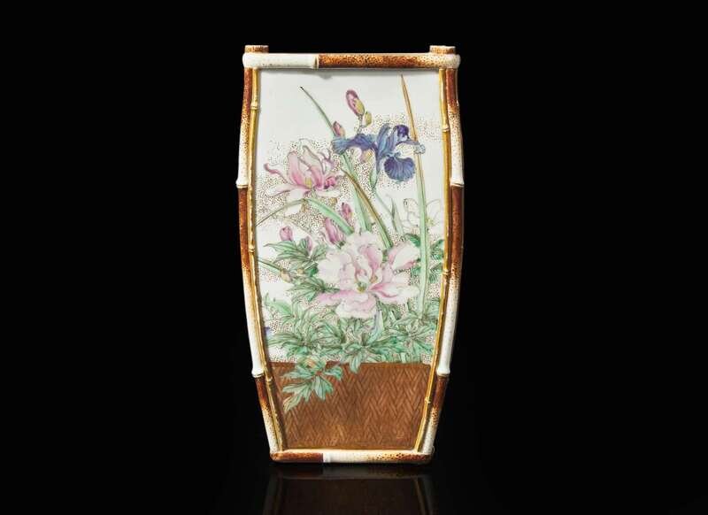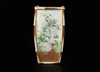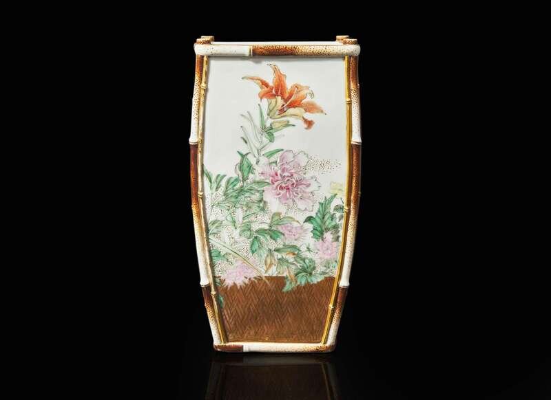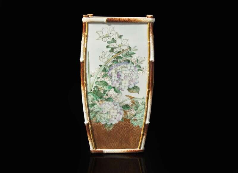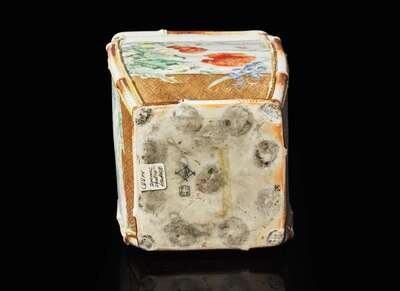Possibly Kawamoto Hansuke VI (1844-1905). Of tapered rectangular form, each side elegantly painted with assorted flowers above a “basketwork” base, underside with artist's seal; “So”; and “183” in Japanese