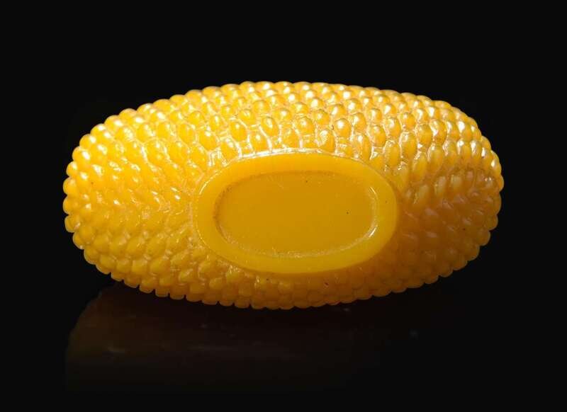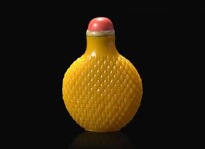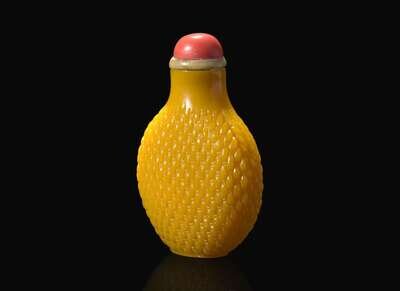 A Chinese yellow glass "basket weave" snuff bottle, Qing dynasty 柳斗紋黃琉璃鼻煙壺 清