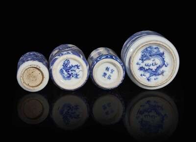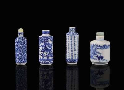 A group of four Chinese blue and white porcelain snuff bottles 青花瓷鼻煙壺一組四件