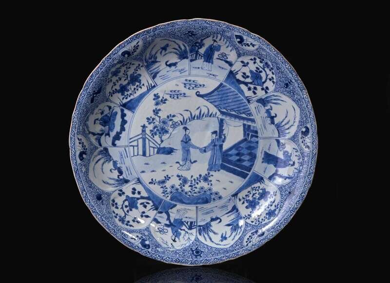 A Chinese blue and white porcelain charger, Qing dynasty, Kangxi period 青花人物大盤 清 康熙