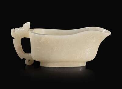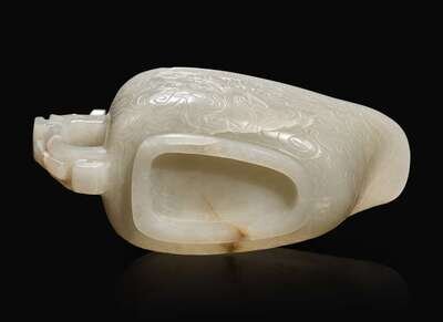 A Chinese carved white jade "Yi" water coupe, 18th/early 19th century or earlier 白玉水匜 十八至十九世紀或更早
