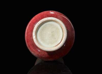 A Chinese copper-red glazed porcelain vase, Qing dynasty 銅紅釉觶瓶 清