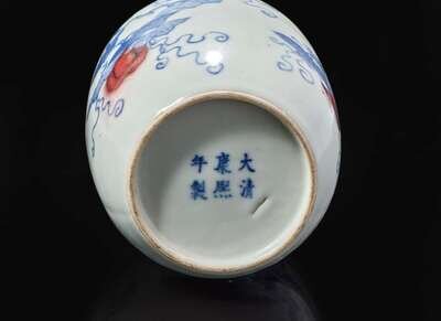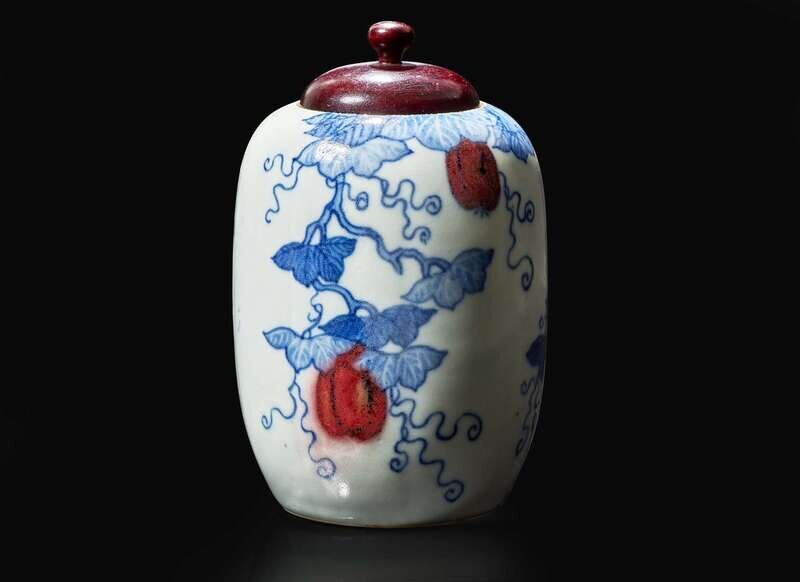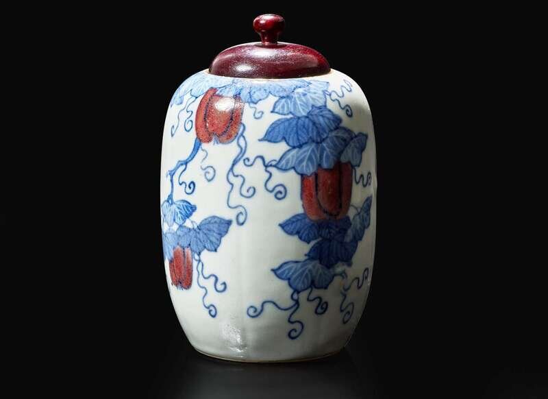 A Chinese underglazed blue and red "Gourds" cabinet vase 青花釉裡紅小罐