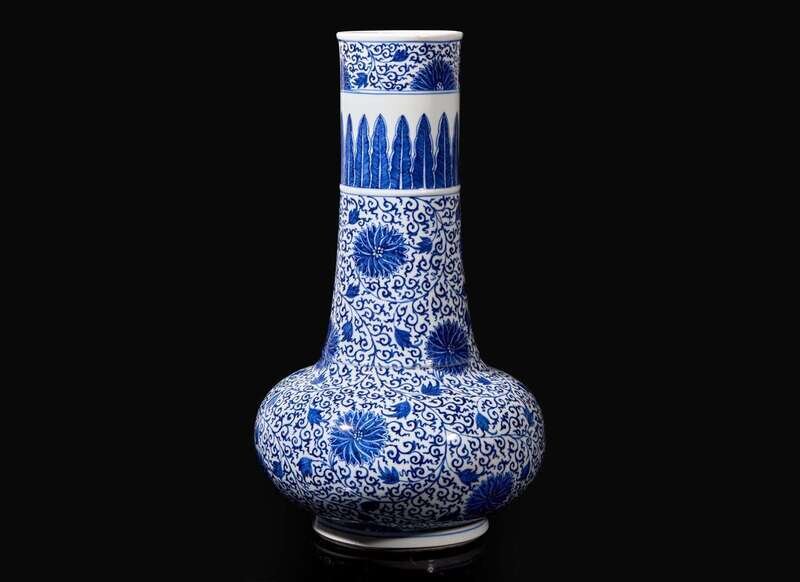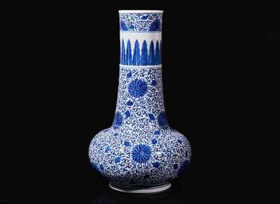 A Chinese blue and white "Lotus" vase, Xuande mark, Kangxi period 纏枝蓮青花瓶 宣德款 清康熙