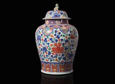 A large Chinese wucai-decorated porcelain jar and cover,18th century 五彩大蓋罐 十八世紀
