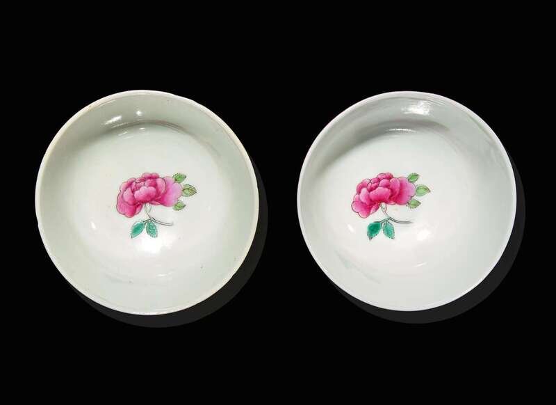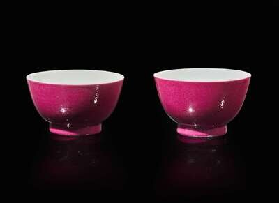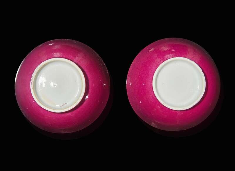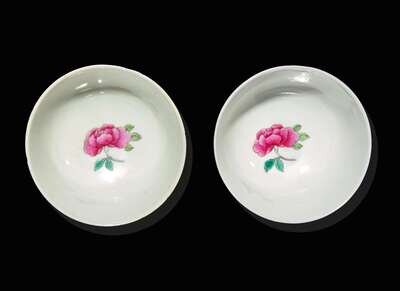 A pair of Chinese ruby-back tea bowls 粉地茶圓一對