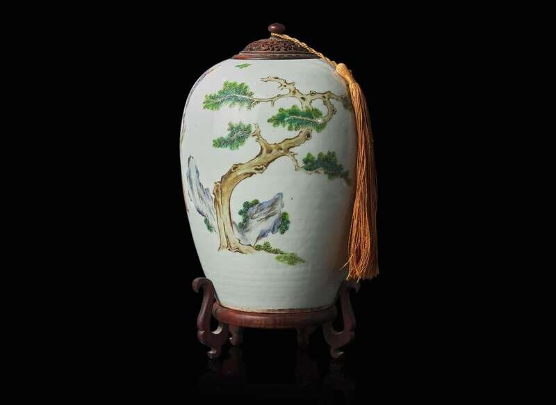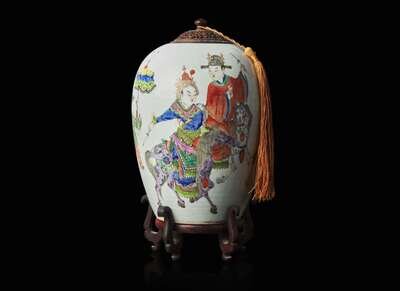 A Chinese famile rose ovoid vase, Late 19th / early 20th century 粉彩人物蓋罐帶底座 十九世紀末至二十世紀初