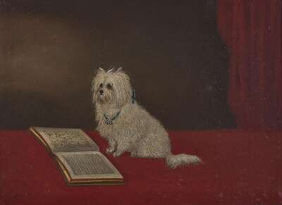 Edwin (of Bath) Loder (British, 1827–1885) - A Maltese Dog Reading