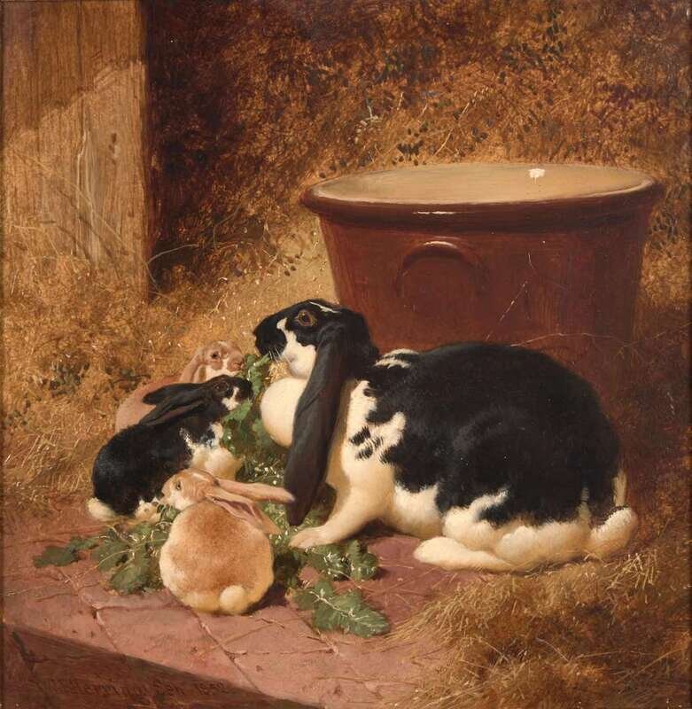 John Frederick Herring the Elder (British, 1795–1865) - A Family of Rabbits