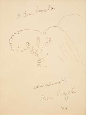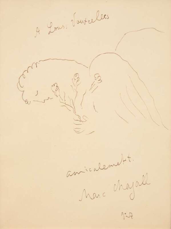 Signed and dated ‘Marc Chagall 1927’ bottom right and dedicated ‘A Louis Vauxcelles’ upper center, ink on paper