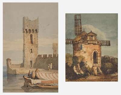 Samuel Prout (British, 1783–1852) - Harbor Tower; together with Windmill in a Landscape (Two Works)