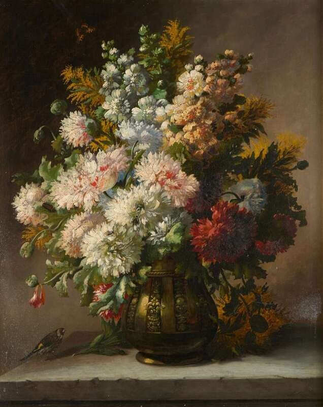 Joseph August Satory (Austrian, 1803–1868) - Tabletop Still Life of Mixed Flowers