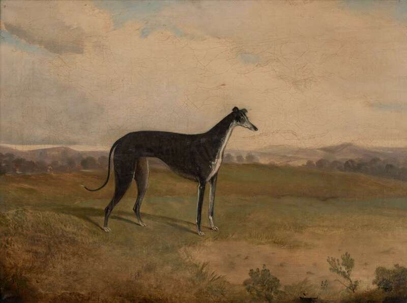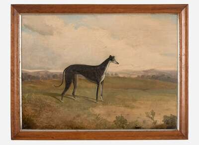 British School (19th Century)- Greyhound in a Landscape