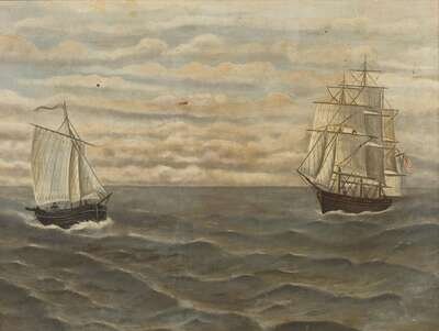 American School 19th century, Two Ships at Sea
