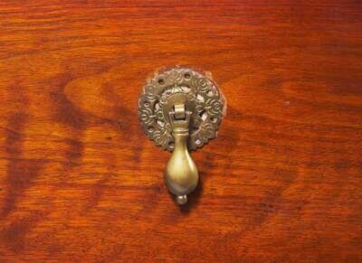 In two parts, the upper section with molded top, over two short drawers, over three graduated long drawers, with paneled sides, the lower section with waist molding, over single long drawer, with arched apron, on turned baluster legs connected by scalloped stretcher, on bun feet.
