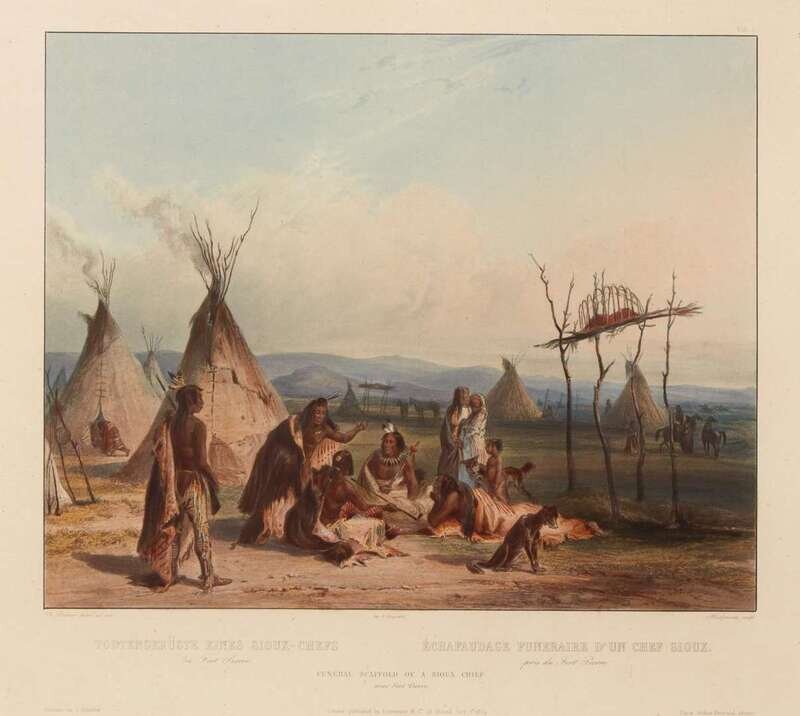 After Karl Bodmer (1809-1893), "Funeral Scaffold of a Sioux Chief near Fort Pierre," circa 1840