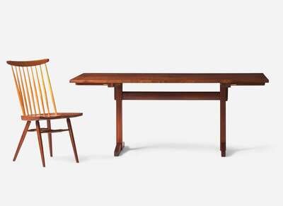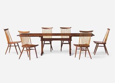 George Nakashima (1905-1990), Trestle Extension Dining Table and Six New Chairs, New Hope, PA, 1966