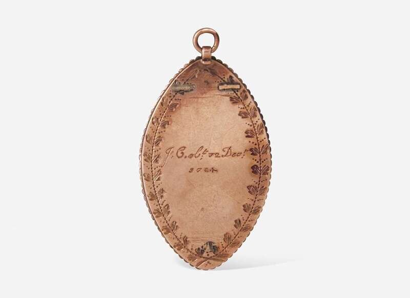 Of navette form, en grisaille, the reverse engraved “J.C. Obt 12 Dec 1784,” and decorated with brightwork.