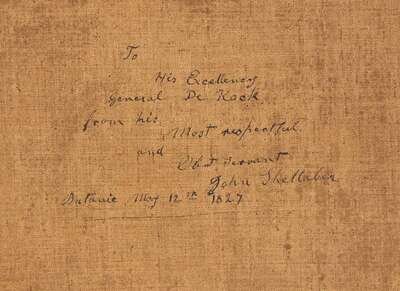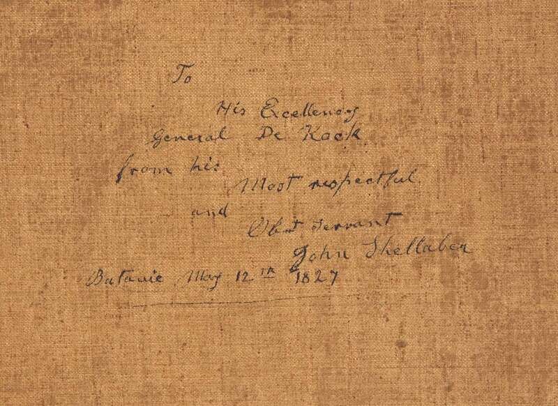Inscribed verso, “To His Excellency/ General De Kock/ from his most respectful/ and obed. servant/ John Shellabear/ Batavie [sp.] May 12th, 1827,” oil on canvas, framed.