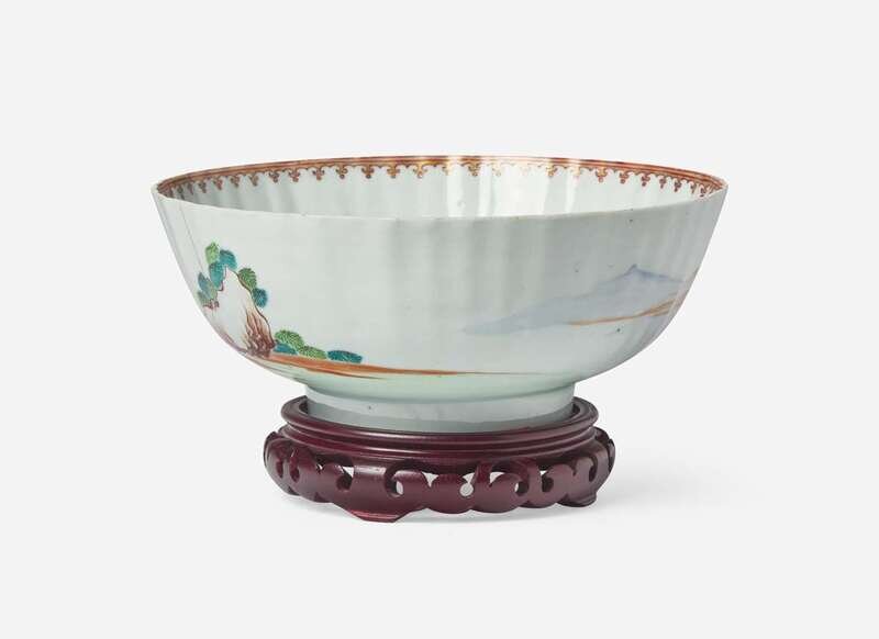 A Chinese Export porcelain polychrome stand and punch bowl, 18th century
