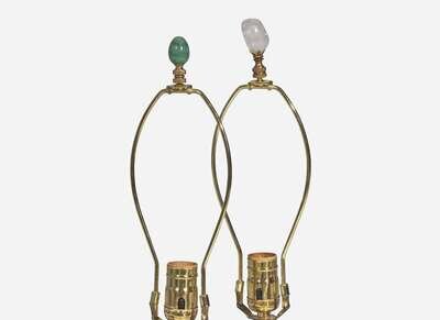 H: 6 in. Dia: 14 ½ in. (bowl), H: 15 ½ in. (lamps, without shade mounts)