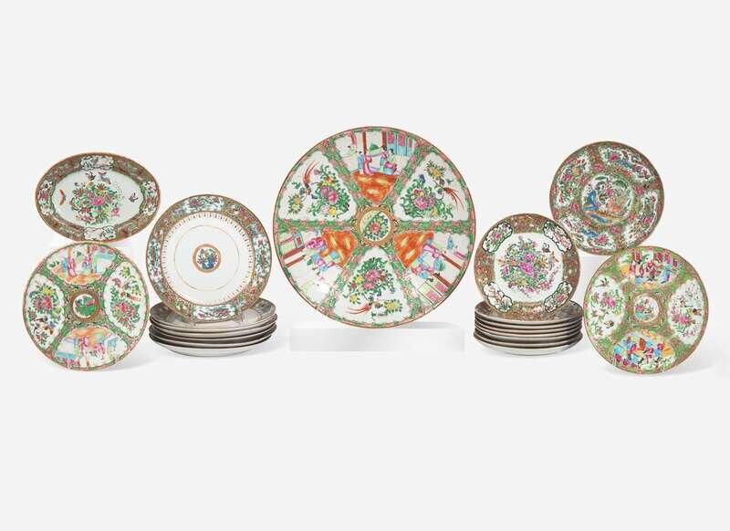 Comprising a large charger, eighteen plates of various sizes, and an oval dish.