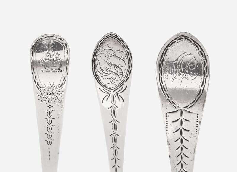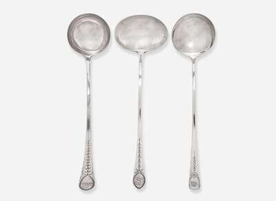 A group of three Federal silver punch ladles, William Garret Forbes (1751-1840), New York, NY, Isaac Hutton (1766-1855), Albany, NY, and John Bedford (active 1782-1834), Fishkill, NY, circa 1790