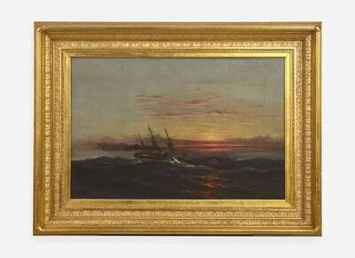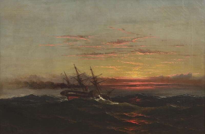 Attributed to James Hamilton (1819-1878), Sunset at Sea with Sail Steamer, circa 1877