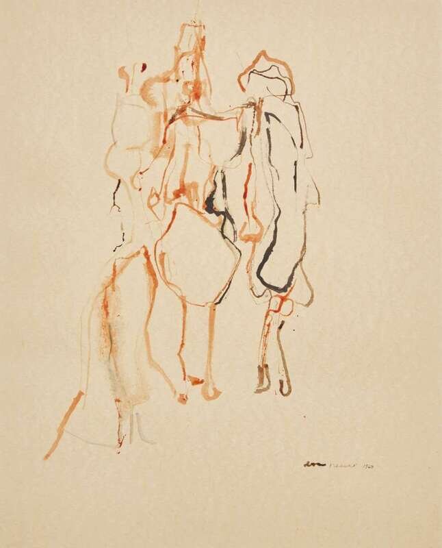 Signed and dated ‘Eva Hesse 1960’ bottom right, ink and wash on paper.