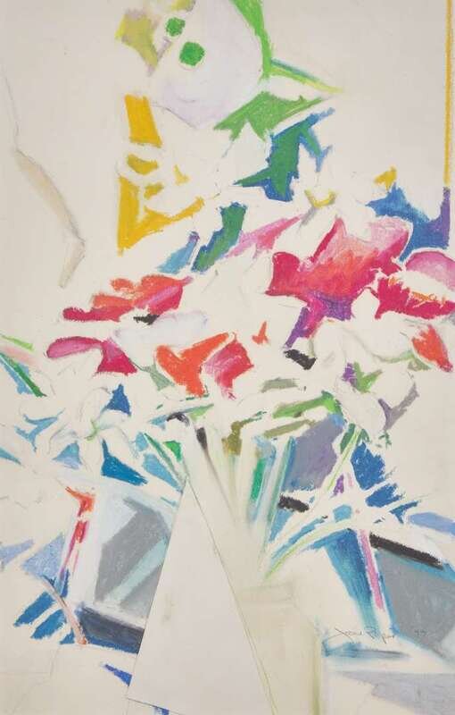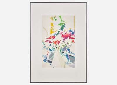 Signed and dated ‘Jane Piper 77’ bottom right, mixed media and paper collage on paper.