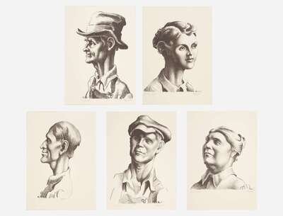 Thomas Hart Benton (American, 1889-1975) - The Joads (Pa Joad, Ma Joad, Sharon Joad, Tom Joad, and Casy, 'The Reverend Jim Casy'), From The Grapes of Wrath