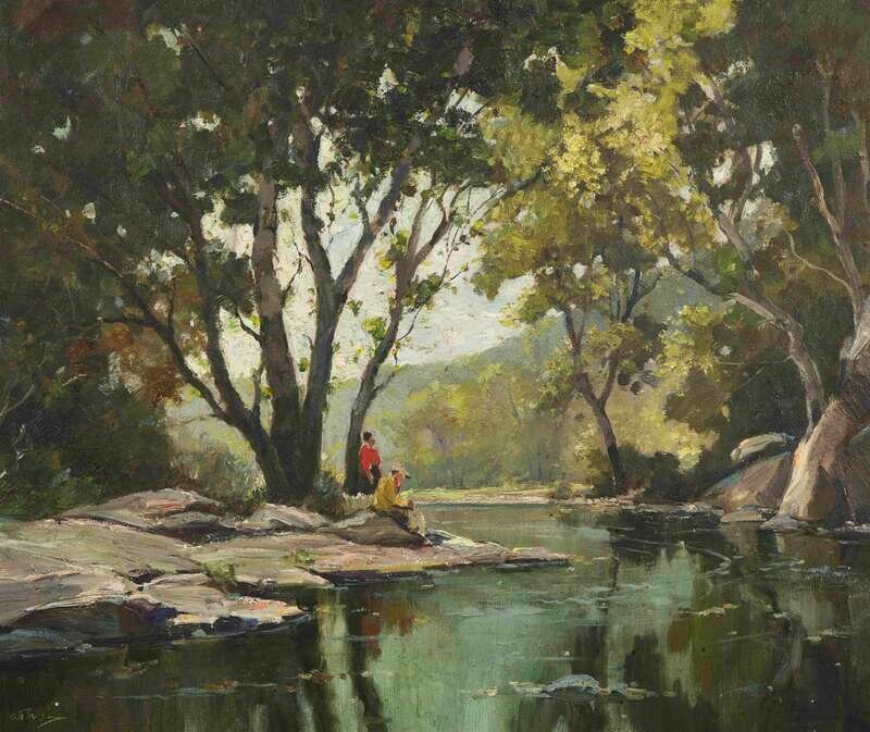 Anthony Thieme (American, 1888-1954) - Fishing by the River