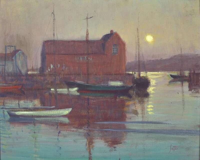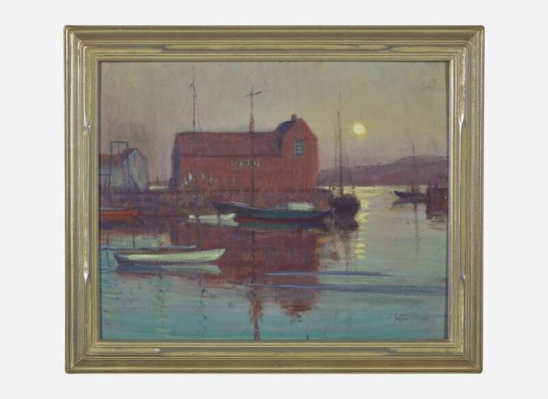 George William Sotter (American, 1879-1953)- Rockport Harbor at Night