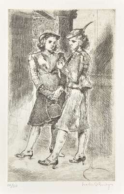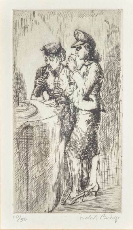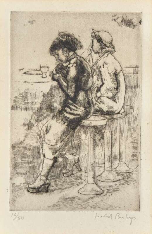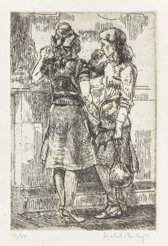 1945. Edition of 50. Signed ‘Isabel Bishop’ bottom right, etching on Rives paper.