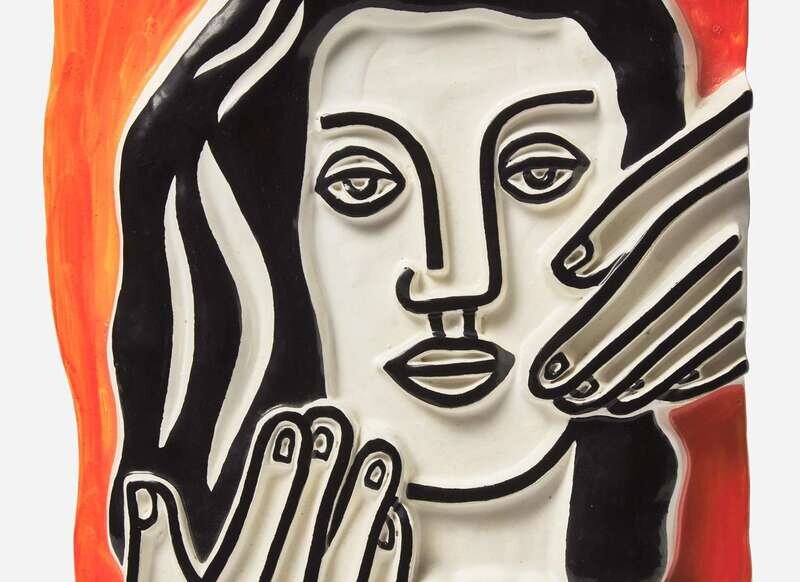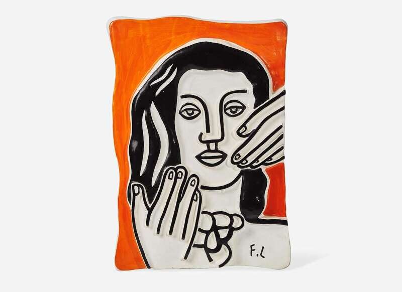 c. 1950, initialed ‘F.L’ lower right, stamped with title and ink numbered 16/250 verso, Musée National Fernand Léger, Biot, publisher, and with their stamp verso. Glazed ceramic.