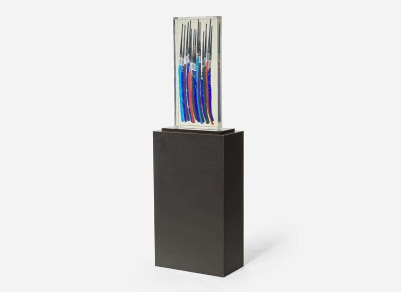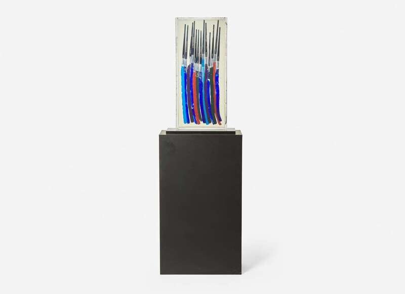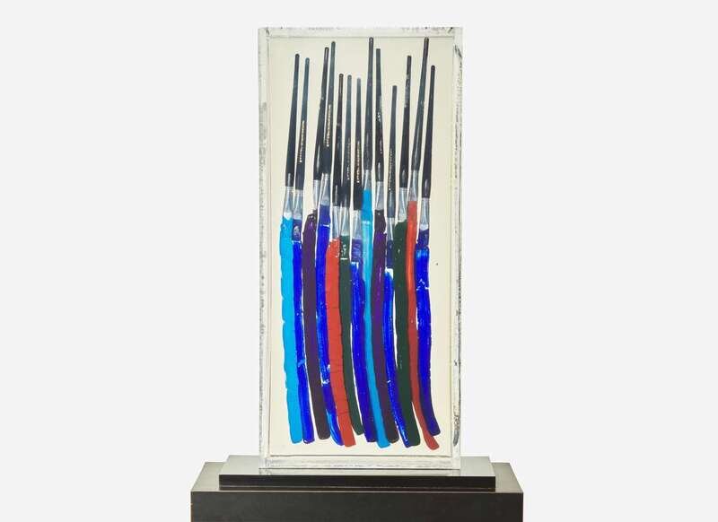 1991, incised with signature and numbered 10/20 (there were also 6 artist proofs), Rosenthal, Chicago, Illinois, editor. Accumulation of paint brushes and acrylic in polyester, encased in Plexiglas.