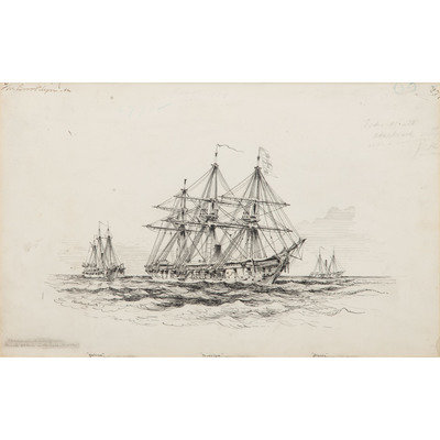 Born in Philadelphia, PA, to painters William Thompson Russell Smith and Mary Priscilla Wilson, Xanthus R. Smith (1839-1929) was given drawing lessons by his mother at an early age. After studying chemistry at the University of Pennsylvania, Smith enrolled at the Pennsylvania Academy of the Fine Arts. During the Civil War, he served in the US Navy, helping to maintain the Charleston, SC blockade. As a result of seeing little action, Smith had the opportunity to sketch hundreds of ships using a variety of media, including oil paint and pencil. Although he didn't participate in many of the battles he illustrated, he was able to consult with those who were involved with the engagements. Smith's work quickly received critical acclaim, and examples can be found at the US Naval Academy, Annapolis, MD, US Naval Historical Center, Washington, DC, Metropolitan Museum of Art, Museum of Fine Arts in Boston, Columbus Museum of Art, and more.