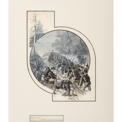 John R. Chapin, Watercolor and Gouache Depicting Soldiers Slogging through Mud