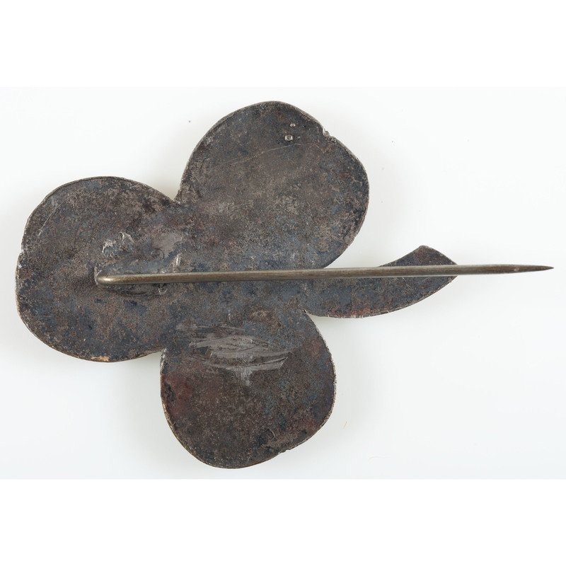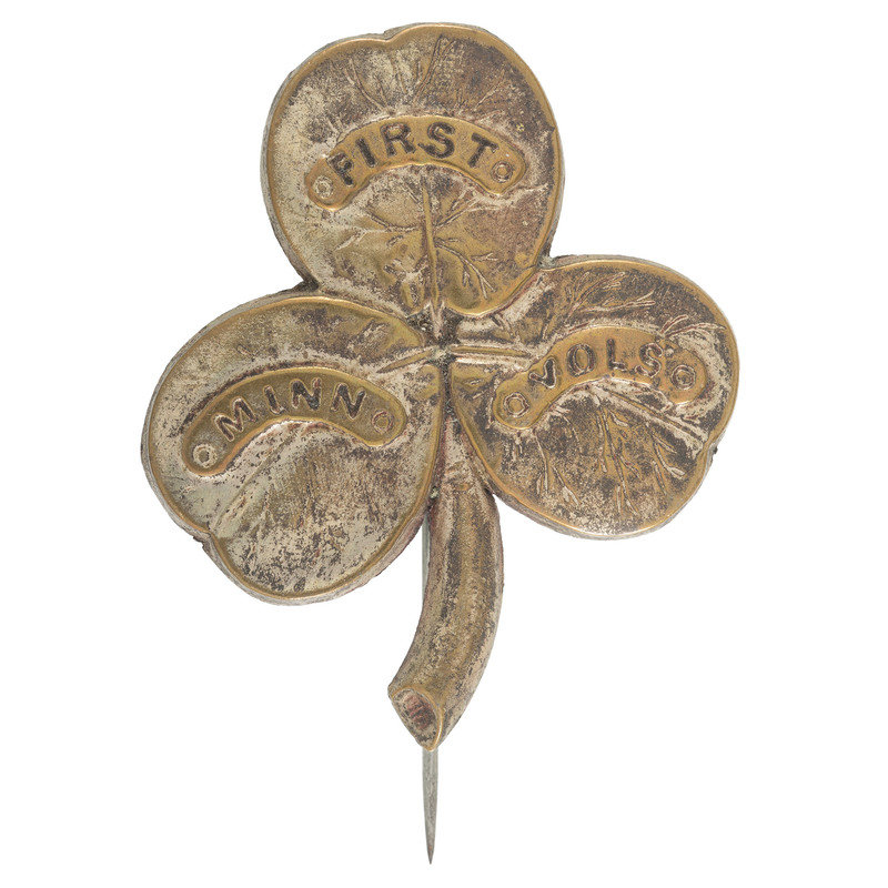 Clover-shaped Second Corps insignia, 1.75 x 1.5 in., with stick pin, identified to the "First Minn. Vols." Ca 1860s or after.