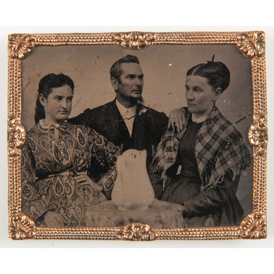 Accompanied by 2 x 2.5 in. tintype of a man and two women seated together. The consignor relates that the flag, which was found together with the tintype, purportedly belonged to one of the subjects of the photograph.