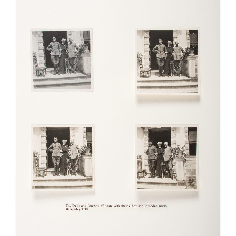 As the heir to the throne, Edward’s role in World War I was non-combatant, and he was even forbidden to travel overseas at the outbreak. Later in 1914, however, he was permitted to join the staff of Field Marshal Sir John French in France, though his duties in this capacity consisted primarily of official visits, troop inspections, and the reception of guests at the British Expeditionary Forces General Headquarters. In the spring of 1916, the Prince joined the staff of the XIV Corps, journeying first to Ypres in 1917, then Italy, where he remained from November 1917 through the summer of 1918. While there, Edward spent time in Rome and different regions in the North, where he partook in numerous official engagements, including a ceremony honoring Italian soldiers led by their King. Also included in this lot are four contemporaneous photographs of the Duke and Duchess of Aosta with their eldest son, Amedeo, and their dog.