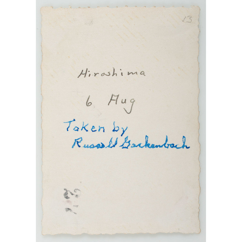 The bombing of Hiroshima, known internally as Special Mission 13, was carried out by three B-29s of the 393rd Bombardment Squadron, 509th composite group: the B-29 Enola Gay, serving the mission role of weapon delivery; The Great Artiste, responsible for blast measurement and instrumentation; and Necessary Evil, responsible for strike observation and photography (three weather reconnaissance planes had previously scouted the conditions over Hiroshima, the primary target, and the contingency targets of Kokura and Nagasaki). 2nd Lt. Russell Gackenbach served as Navigator on Necessary Evil, which also carried Prof. Bernard Walman, the only civilian in the crew of 10, as the official government camera operator. Despite a search of the crew before takeoff, Lt. Gackenbach managed to secrete his personal Agfa Viking camera aboard. According to interviews with Gackenbach, he retrieved his camera barely one minute after Little Boy was dropped from the Enola Gay – “as soon as the initial flash died down” – and snapped two photographs.