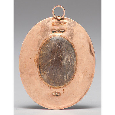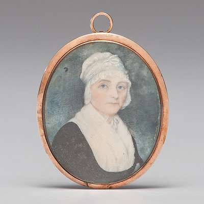Oval portrait miniature on ivory, possibly a second-generation Johnson family member such as Elizabeth Johnson Payne (1772-1846) or Sally Johnson Ward (1778-1816). Early 19th century, unsigned. Approx. 2 x 2.5 in.