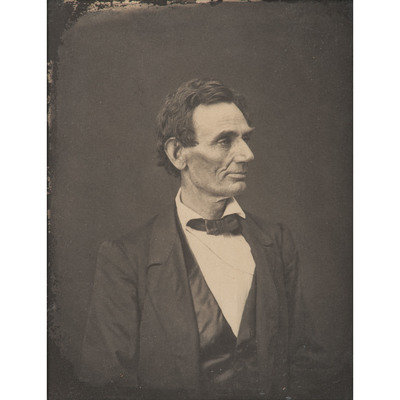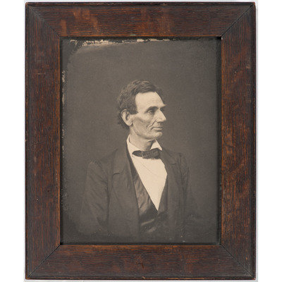 This is one of four known portraits of Lincoln taken by Hesler on June 3, 1860 at the old Capitol Building in Springfield, IL, two weeks after Lincoln's nomination for President by the Republican National Convention in Chicago. The original plates were retained by Ayres when he bought and sold Hesler's gallery immediately after the Civil War. In 1881, Ayres produced prints from the plates and also created a duplicate set of glass negatives [Ostendorf, 49].